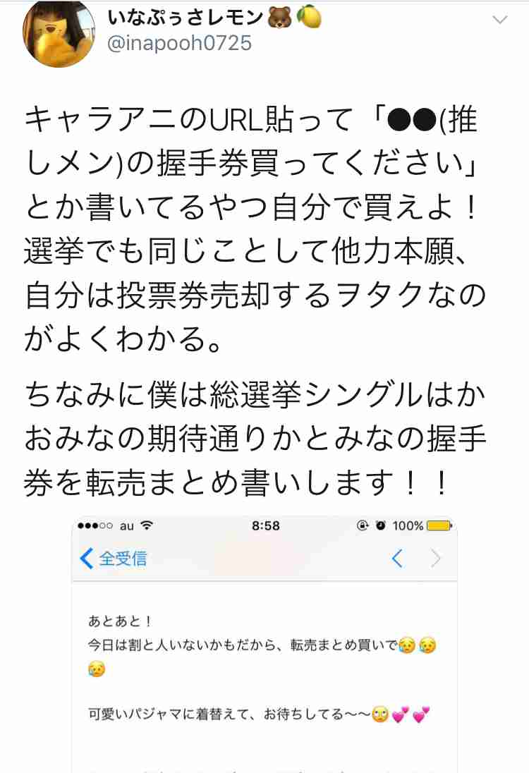 01月08日 山口「なんで真面目にやってる子が守られずファンを裏切って繋がってる人が正しいの?なんでそれを許すか分からない」(Twitter)