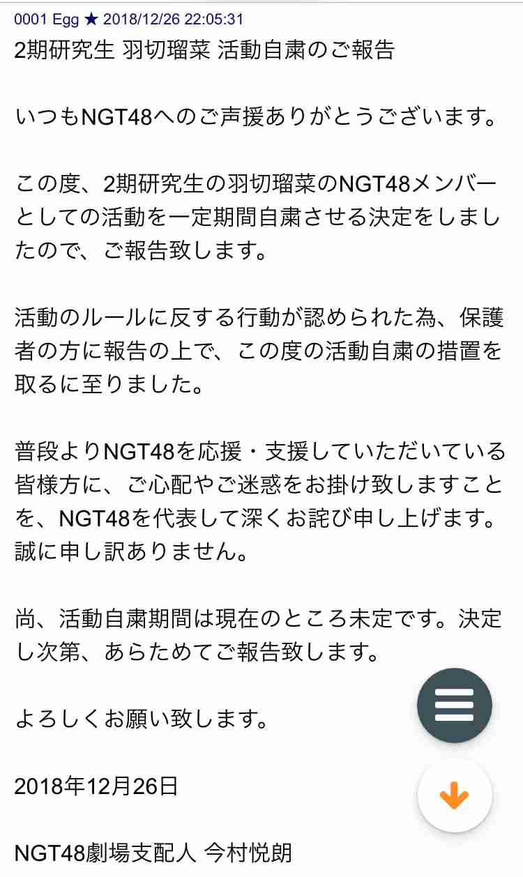 がたねぇのこの前の「少しお待たせしてしまいますがいつか笑って話せる日が…」みたいな意味深なモバメって結局謹慎の事だったのかな?