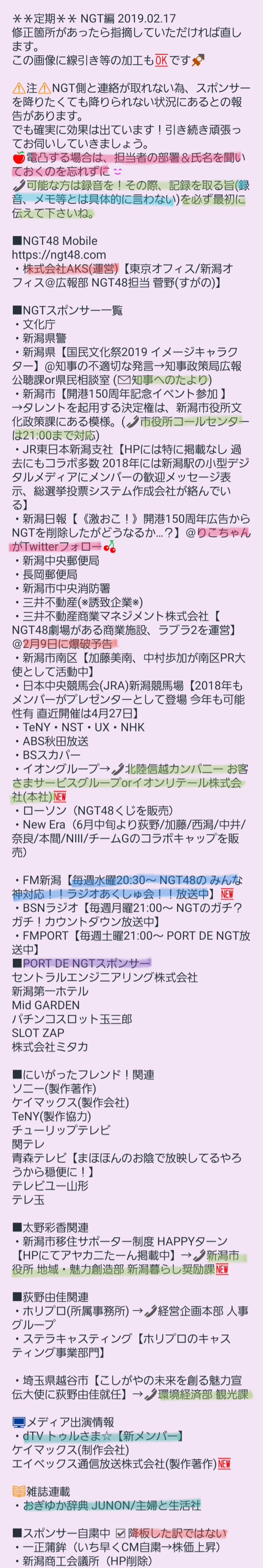 NGT48スポンサー各社 まほっとひと安心