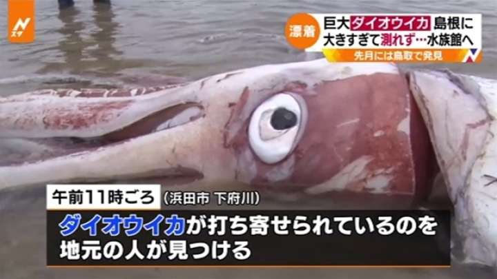 深い海に生息する巨大生物のダイオウイカ。先月、鳥取県で発見され、話題となりましたが、21日、隣の島根県でも見つかりました。