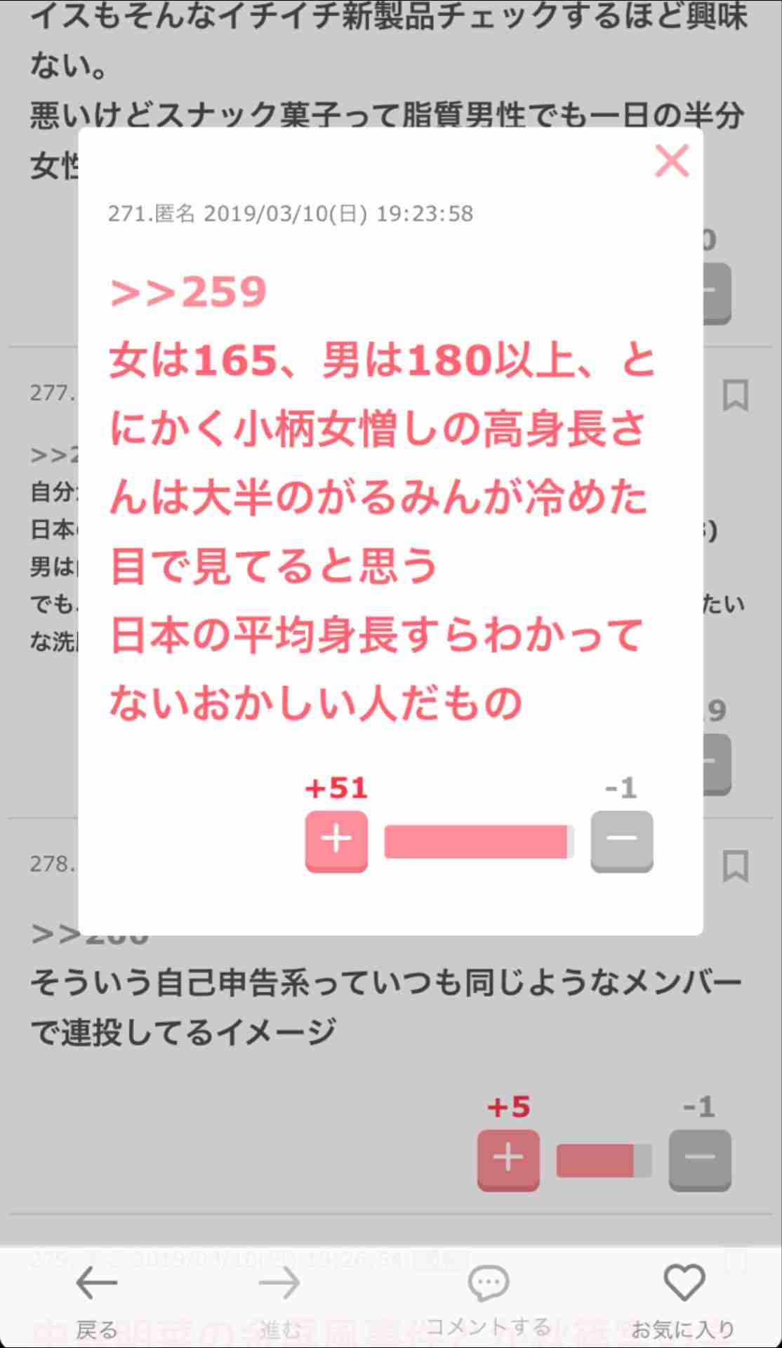 なんとなく、この元の書き込みの人本当は背が低い方なんだろうなぁ…。ここまで低身長持ち上げて高身長は酷い言われようなのにね。+3