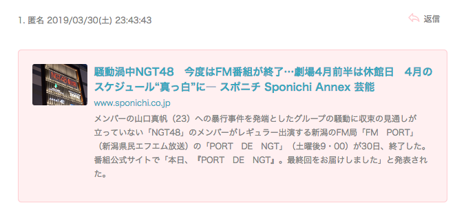 騒動渦中NGT48 今度はFM番組が終了…劇場4月前半は休館日 4月のスケジュール“真っ白”に
