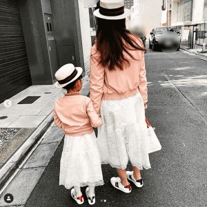 神田はこの日、「こちらのお揃いのスニーカーも今回のバースデーで友人達に贈って頂いたものです。サイズもバッチリ流石でした(笑)#gucci#グッチ#お揃い#スニーカー#sneakers #バースデープレゼント#バースデーギフト#ありがとう#どうもありがとう」とのコメントを添えて、娘とお揃いのトータルコーディネートを披露した。春色のパステルピンクのブルゾンに白いレースのロングスカートを合わせ、足元は高級ブランドGUCCIのスニーカーでまとめあげられている。
