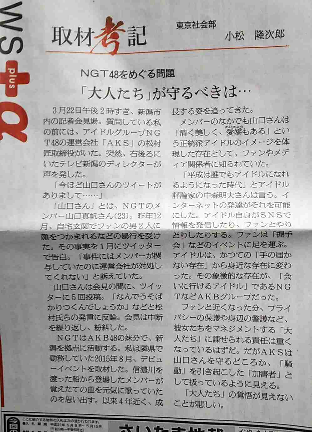 世間の声を聞くこと、JR東日本新潟支社さんが発表したNGT48へのコメントを理解する事、そして一正さんの姿勢を見習って欲しいとも思いました