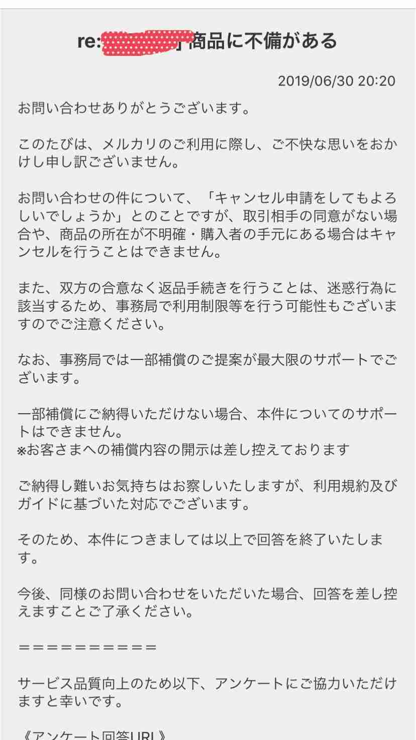 メルカリってお詫びメール多くない?