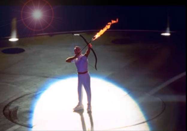 バルセロナオリンピックの開会式でアーチェリーの選手が火のついた矢を放って聖火をつけたやつ。自分だったら手が震えて大惨事が起こってるに違いない。+27