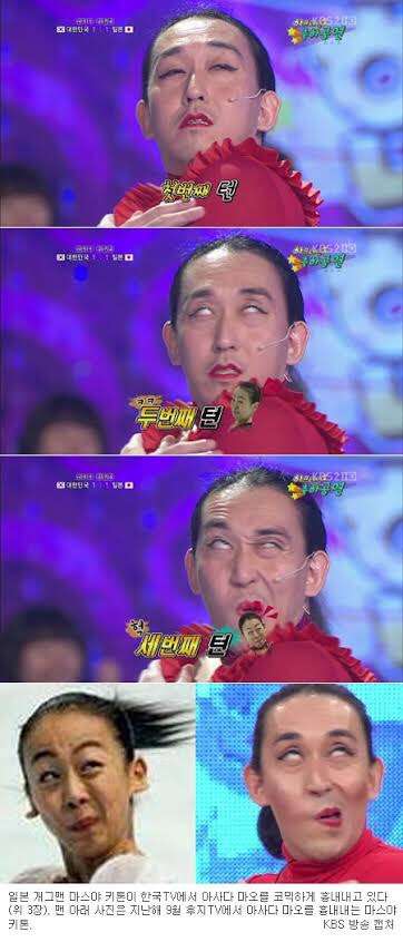 キムヨナとの事もあり、その当時浅田真央は日本のTV局から散々な扱いをされて、この物真似は日本のTVでも流していた、それを見て他の芸人も笑っていた