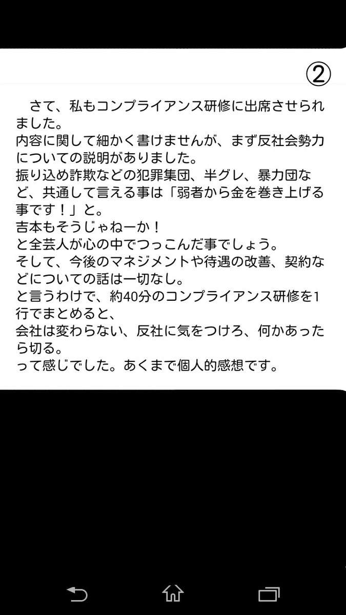 確かに芸人と雇用契約書も交わさず、最低賃金すら払わない吉本は反社と同じくらいブラックだよね。+553