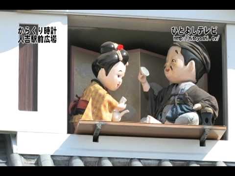 お城みたいな手前の建物がからくり時計になっています。リンク先で見れます!人吉駅前広場 からくり時計 - YouTubeyoutu.beSL人吉が12時13分定刻に人吉駅に着きました。数分後に駅前広場のからくり時計が乗客を迎える。球磨の六調子のメローディで臼太鼓踊りが動き出す。相良のお殿様は楽しそうな城下に商屋どんに化けて焼酎や温泉を楽しむというストーリーです。人形は四方に出現するので...