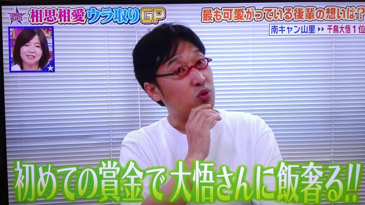 山里亮太「お金なんかないのに」千鳥大悟の男気明かす「『お前ら運エエなあ』って…」― スポニチ Sponichi Annex 芸能www.sponichi.co.jpお笑いコンビ「南海キャンディーズ」の山里亮太(42)が29日放送のテレビ朝日「ロンドンハーツ」(火曜11・25)にVTR出演。先輩にあたる「千鳥」大悟(39)の、若手思いの一面を明かした。「相思相愛 ウラ取りグランプリ」と題した企画で、「最も慕っている先輩」の1位として大悟の名を上げた山里。