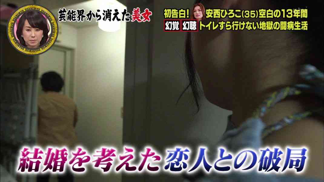 パニック障害から芸能界に復帰したタレント・安西ひろこ(35)が11日、TBS系「櫻井有吉アブナイ夜会」に出演。「彼氏できた」と恋人ができたことをのろけた。相手は一般人という。安西は01年から08年までの間、パニック障害で芸能活動を休止。10年に告白本「バルドーの告白」を出版したものの、再び症状が悪化し、芸能活動を休止。今年から本格的に芸能活動を再開している。