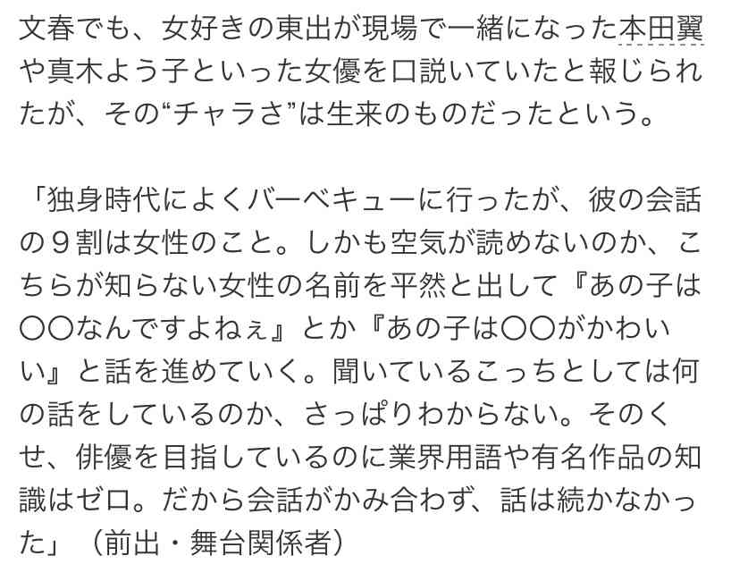 東出、杏に疑われた時に「頭おかしいんじゃない?」なんて言ったんだよね。