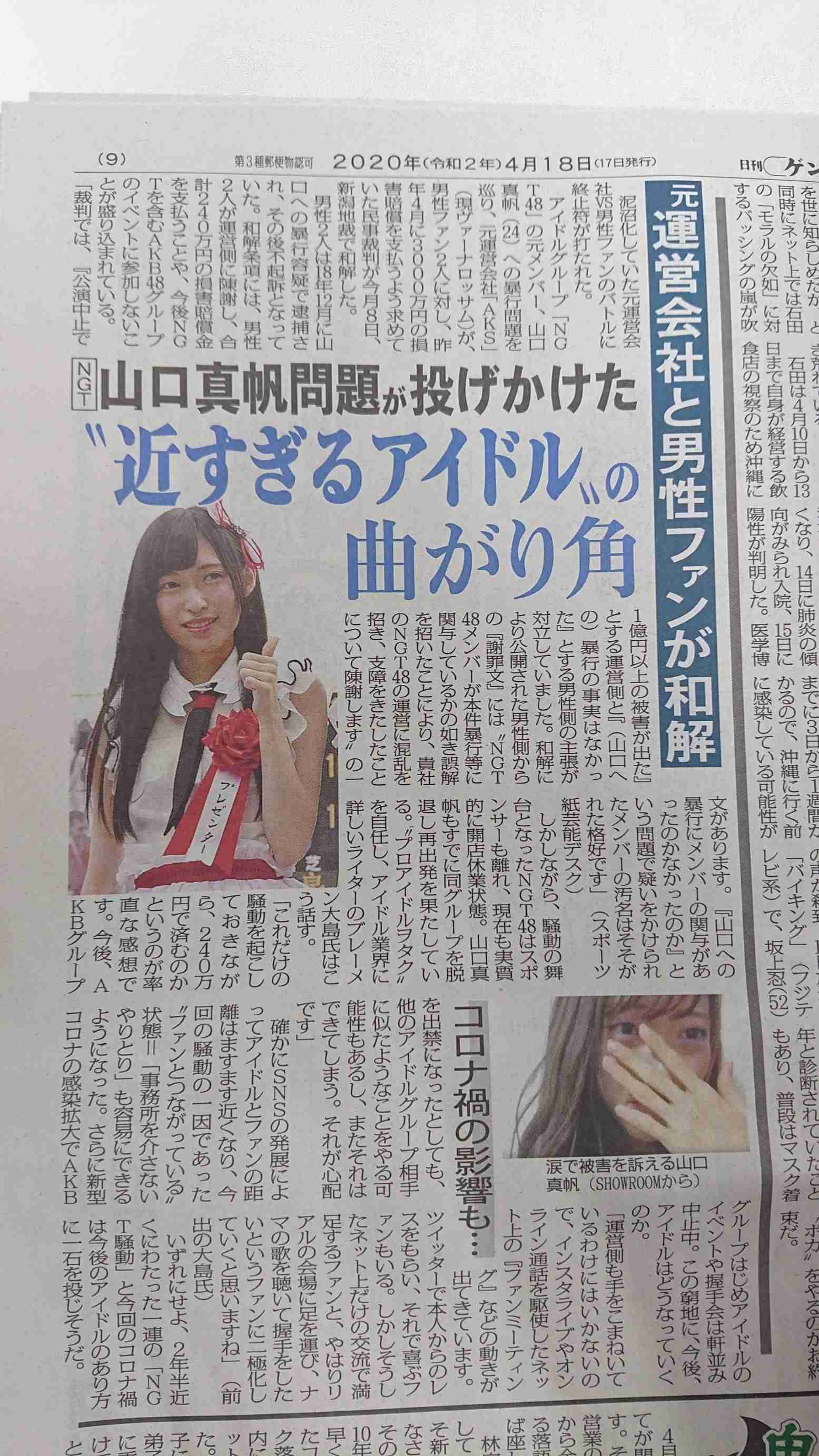 真帆ちゃん混ぜて微妙なNGTメンバーとやったとかなら無神経だなとか思うけど、本人が山田とやっただけならいいでしょ。