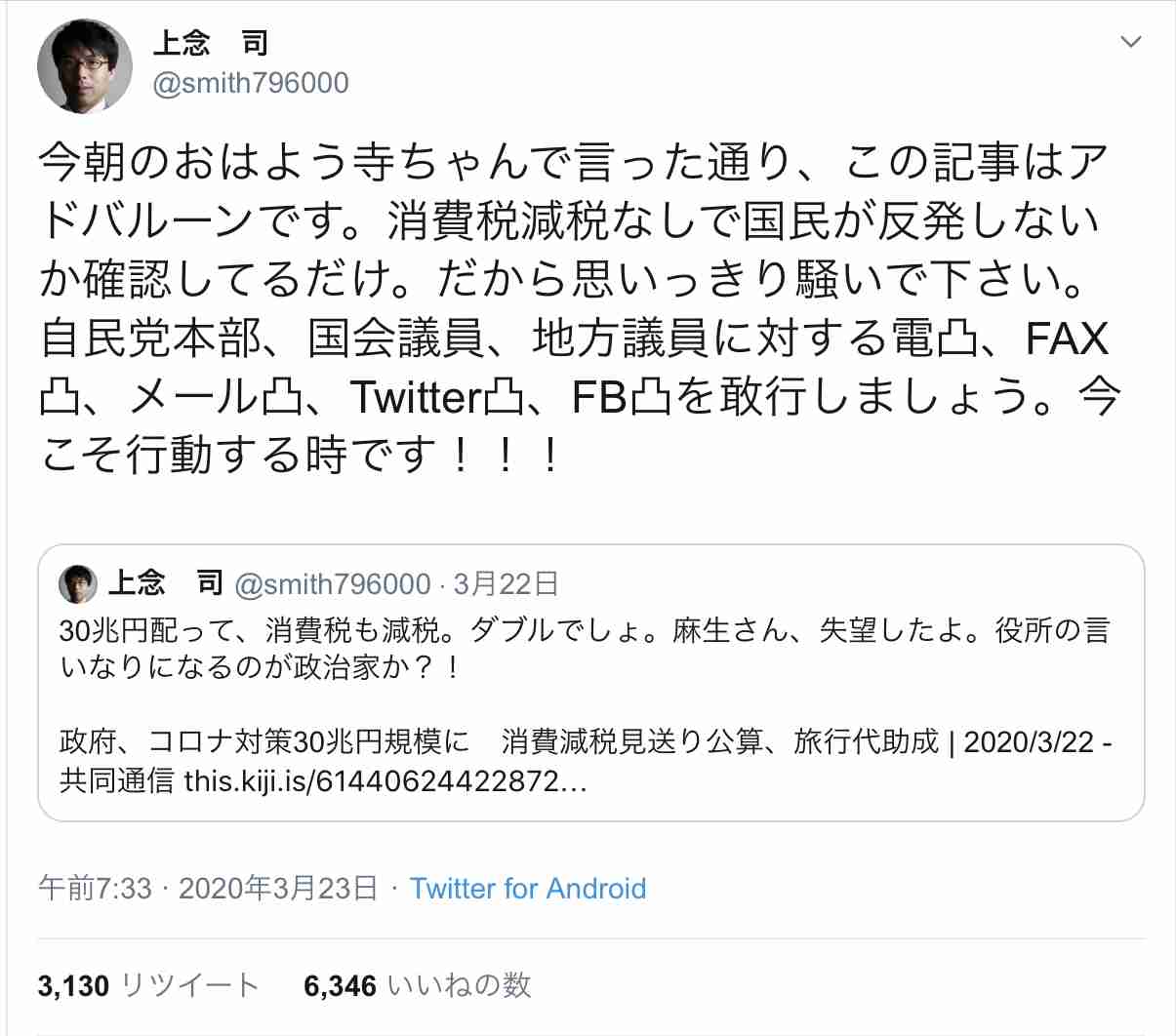 コロナが収束せず、来年のオリンピックがもし中止になったら、また増税の可能性もあるね…+11