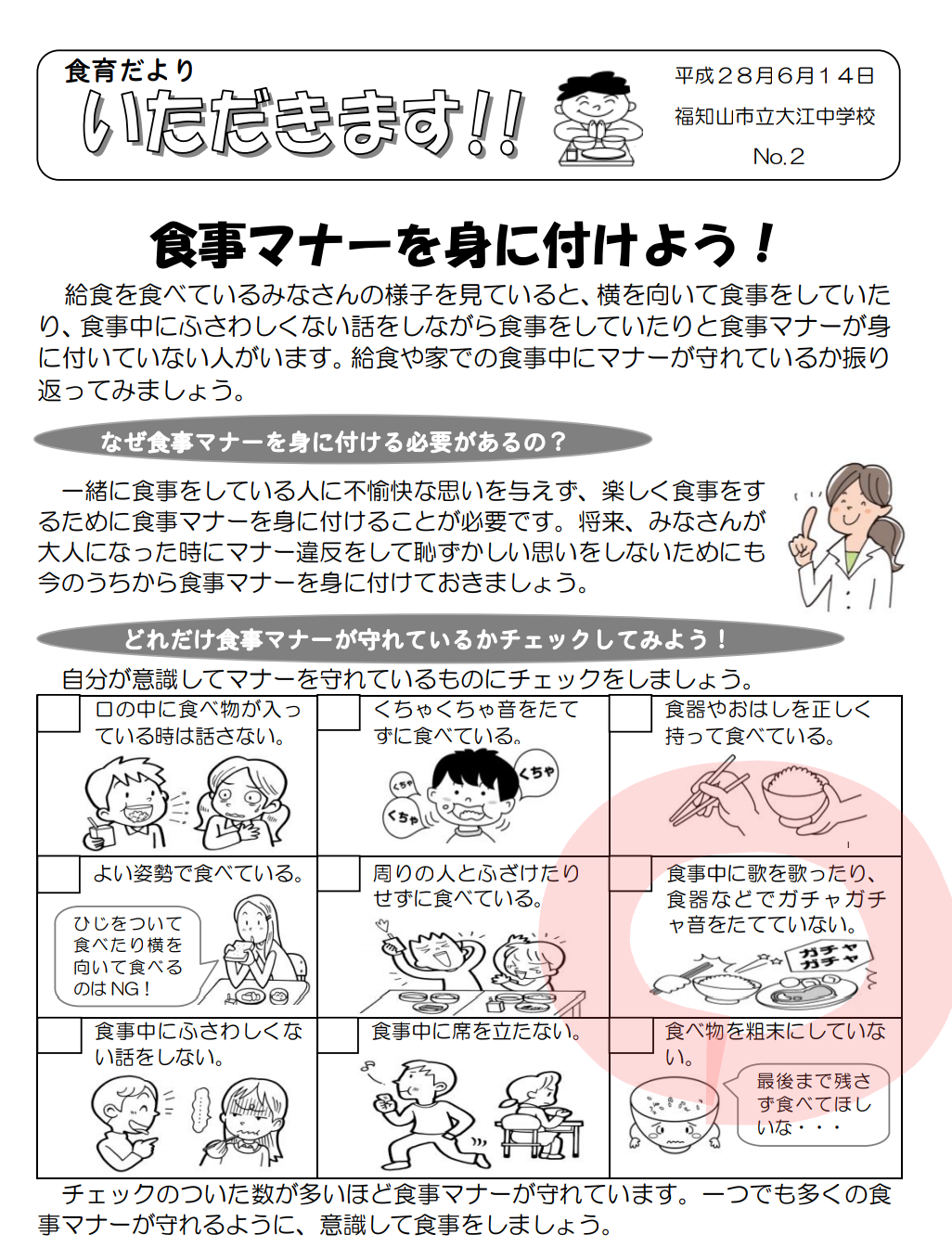 ご飯を食べるときに足を立てない。肘をつかない。+278