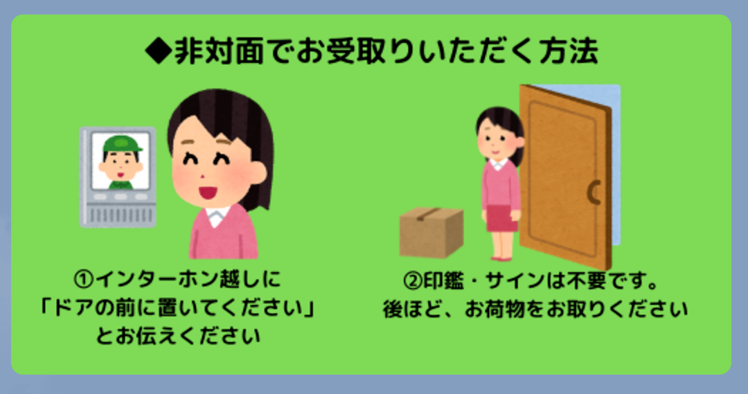一回地面に置かれるより手渡しの方が荷物運びやすい。重いものは玄関前よりちょっとだけ中に置いて欲しい。