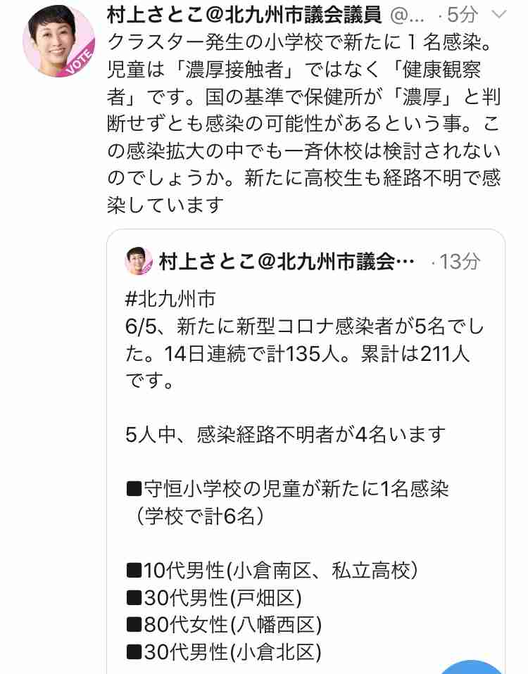村上さとこ@北九州市議会議員(@murakamisatoko)さんがツイートしました: 皆様!