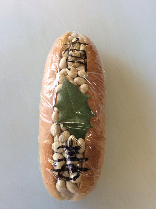 鬼の顔のパンだったらよかったのに、パンに豆を挟む発想がすごい。+1