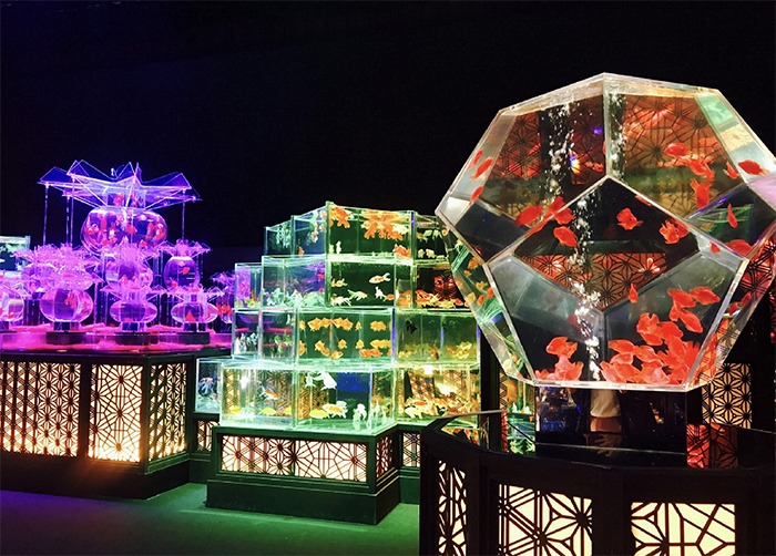 写真のように金魚がたくさん展示されていてギラギラしてるだけ。なんなら写真のほうが綺麗に見えるから、わざわざお金払って見るのは時間の無駄だなって思う。