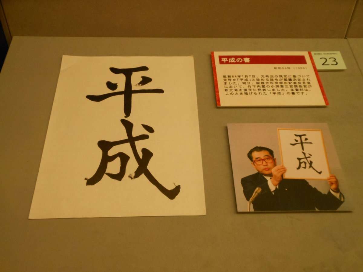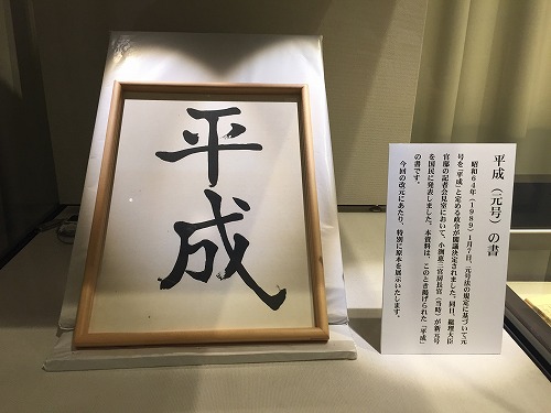 この額(平成の書)は、テレビでの元号発表時に漢字が一目でわかるようにと用意した