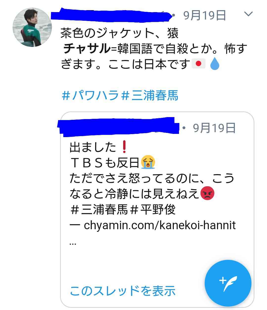 もう春馬くんより自分で作り上げたストーリーを推してきますから。そして署名に誘導。警視庁が動くと思いますか?考えたらわかるでしょう?政治に絡めて安部さんが殺したとか おかしいと思わないんですか?春馬くんこの先誰にも語られなくなって行きますよ。ほんとに他殺に持って行きたい人どうにかなりませんかね。5ちゃんやYoutuberの話信じてる時点で相当頭おかしいですよ+12