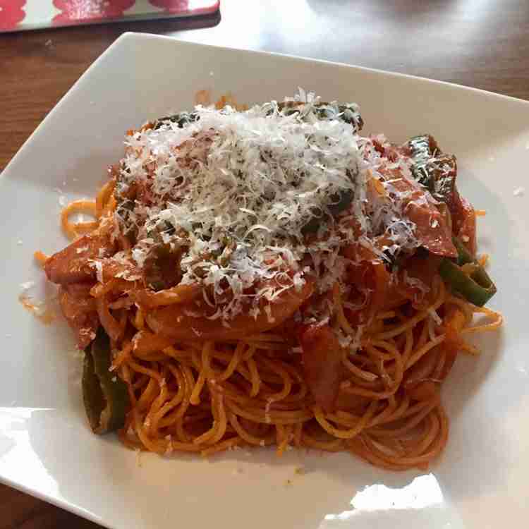 でも、他のパスタには良いけど、ナポリタンには粉チーズのが合う気がする😅+5