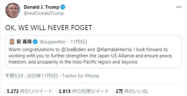 日本の報道ではトランプ氏恥だとか、ただでさえ少ない功績が無駄になってしまう悪あがきとか言われてて引いた。覆ったらどう報道するつもりなんだか。+12
