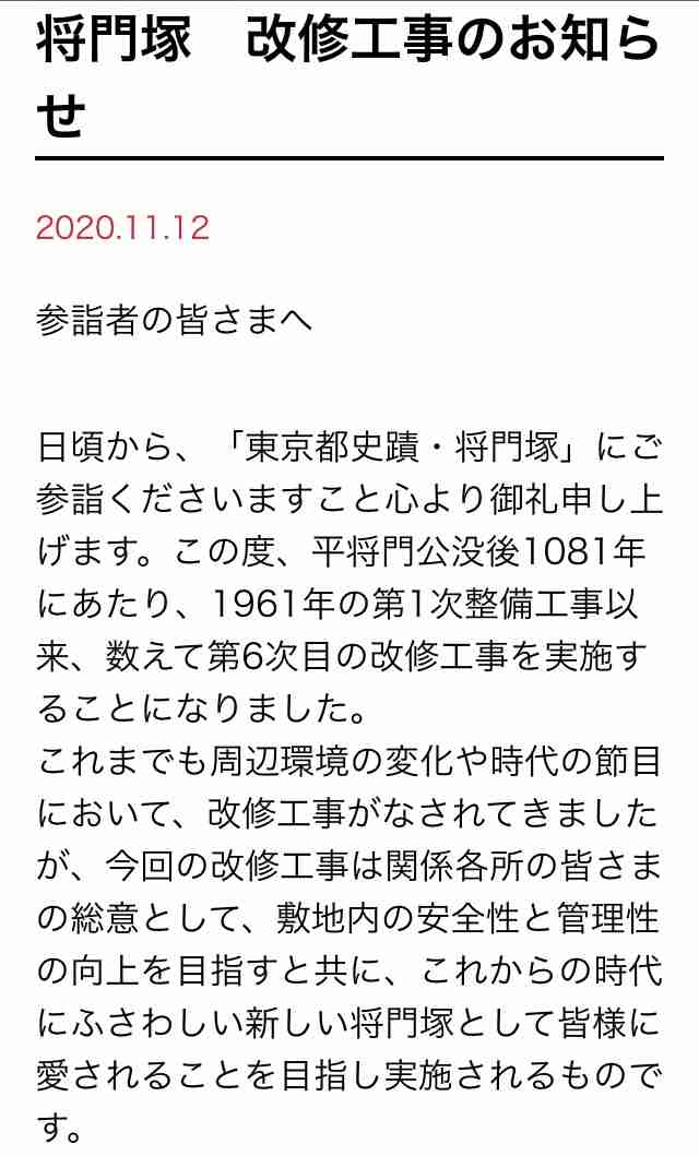 一応将門塚自体の改修工事ってことらしいけどちょっとゾッとするよね+38
