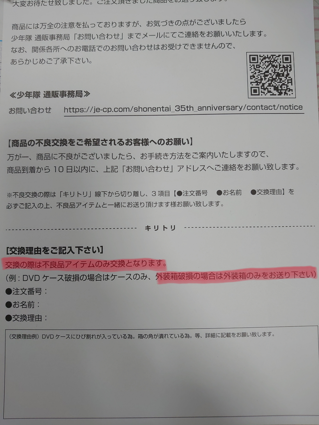 それが事務局からの返事はまだですが、同封されていた紙に書いてありました!