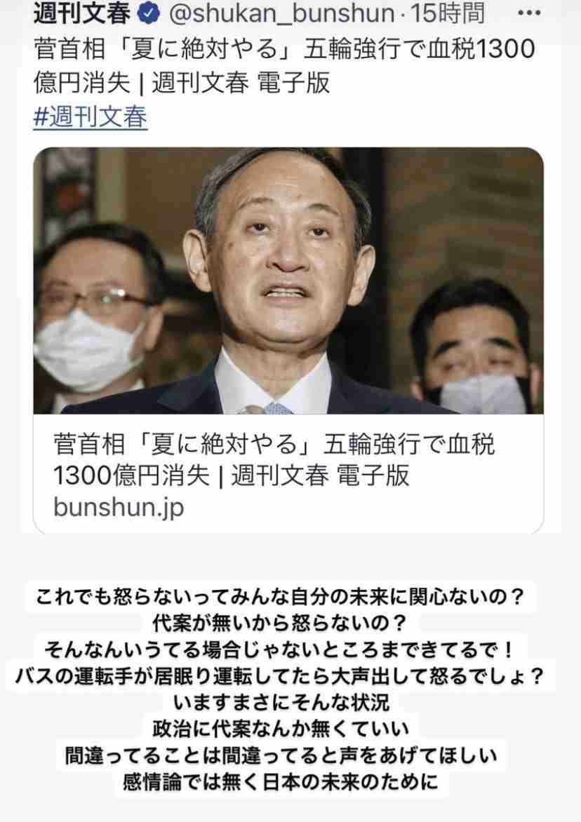 日本はワクチンも進まないのに、オリンピックも開催すると言い続けているが、結局「国に緊急事態という危機意識がない」ということなのでしょうか。