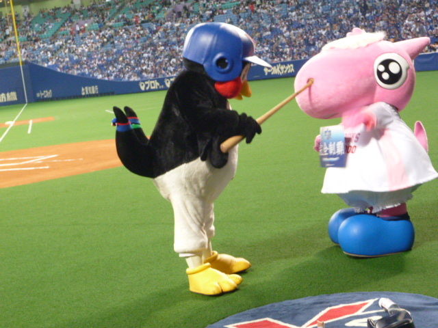 千葉ロッテのマーくんとも仲良しだよ![ドアラの魅力]()