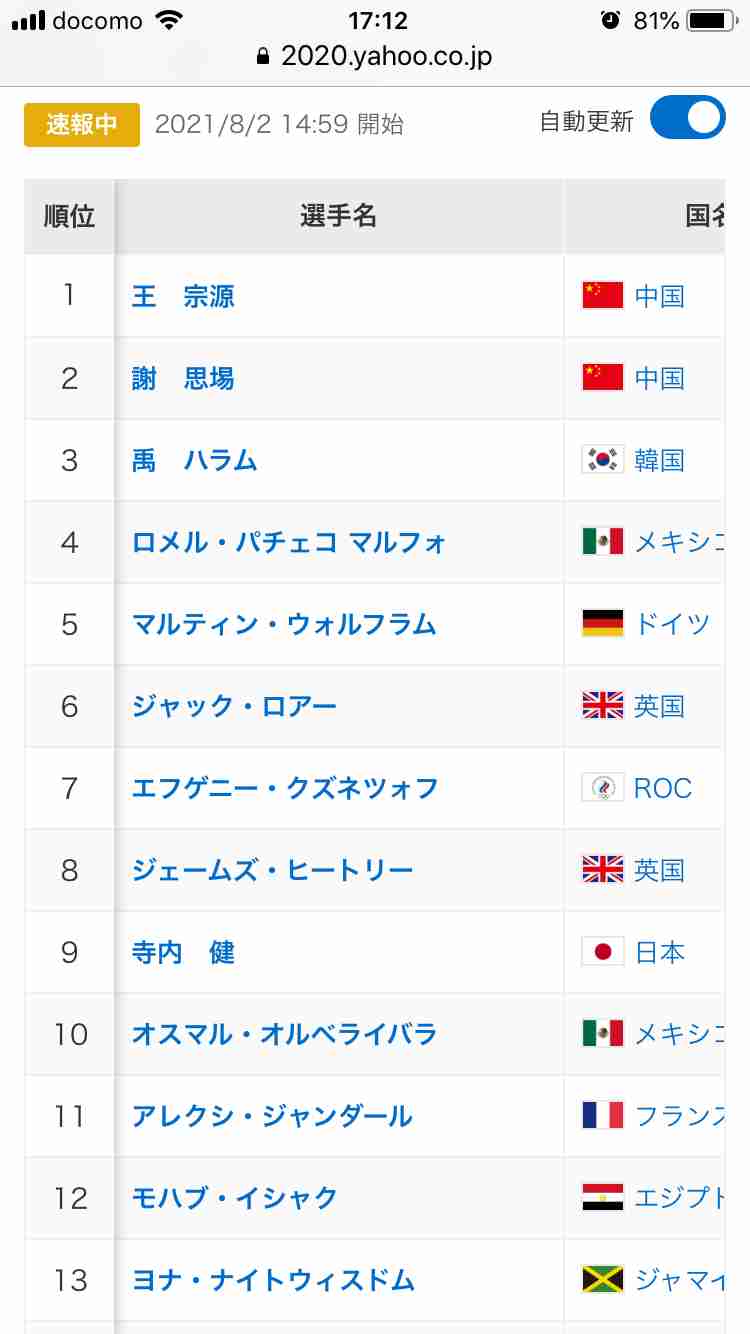 寺内選手、順位上げてきてる