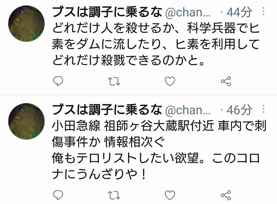 爆破予告とかといい、こういうのをネット上に書き込んだら逮捕されるって一般認識ありそうなもんだけど。