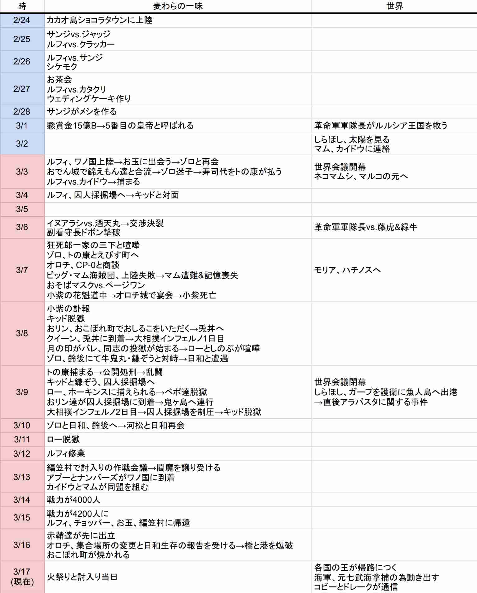 パンクハザードとコロシアムのところ、ワノ国で脱落した。+166