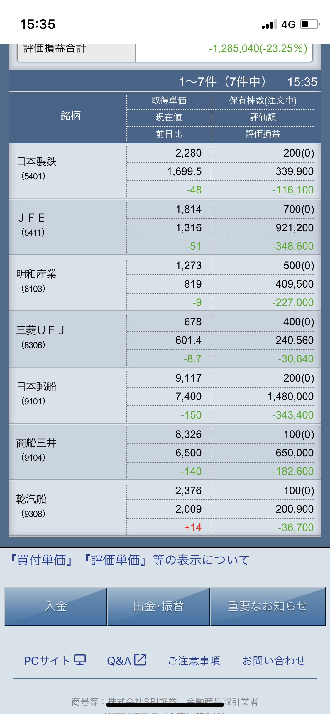 私の完全な予想外はjfeでした。業績良いからこんな下がるとは思わなかった。安全と思って買っただけにかなりキツい。+41