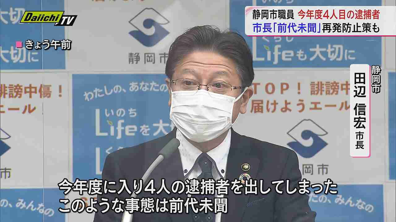 静岡市の田辺信宏市長は26日の記者会見で、窃盗容疑で市職員が逮捕されるなど不祥事が相次いでいることを受け「あるまじき事態が続いてしまい、深くおわび申し上げる」と謝罪し、厳正に対処する方針を改めて示した。