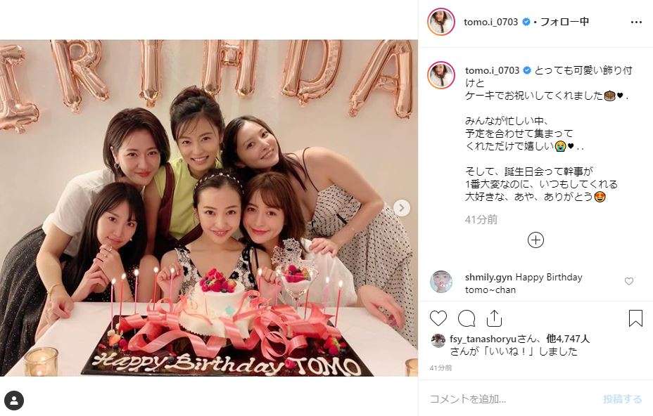 板野友美、小島瑠璃子&前田敦子らと女子会ショット公開「30代これから楽しみ!」 : スポーツ報知hochi.news10月10日に第1子となる女児を出産したことを発表した元AKB48の板野友美が11日に自身のインスタグラムを更新。自身の誕生日を祝ってもらった写真を公開した。 板野は、「今年1年をデータフォルダで振り返ってたら誕生日お祝いしてもらった写真が。少しコロナが落ち着いたタイミングでベビーシャワーとお祝いしてくれました」とコメント。タレントの小島瑠璃子や元AKB48の永尾まりやなどからお祝いしてもらった写真をアップした。