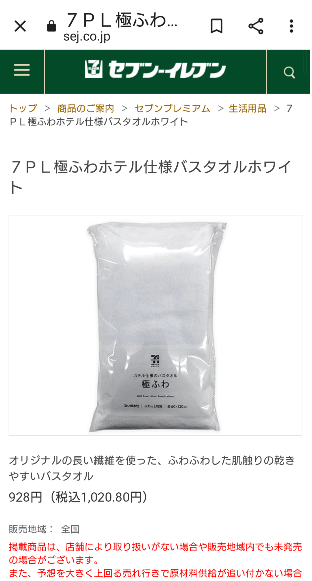 横だけど、セブンイレブンのバスタオルはこれじゃないかな?店頭に売ってあるものです。