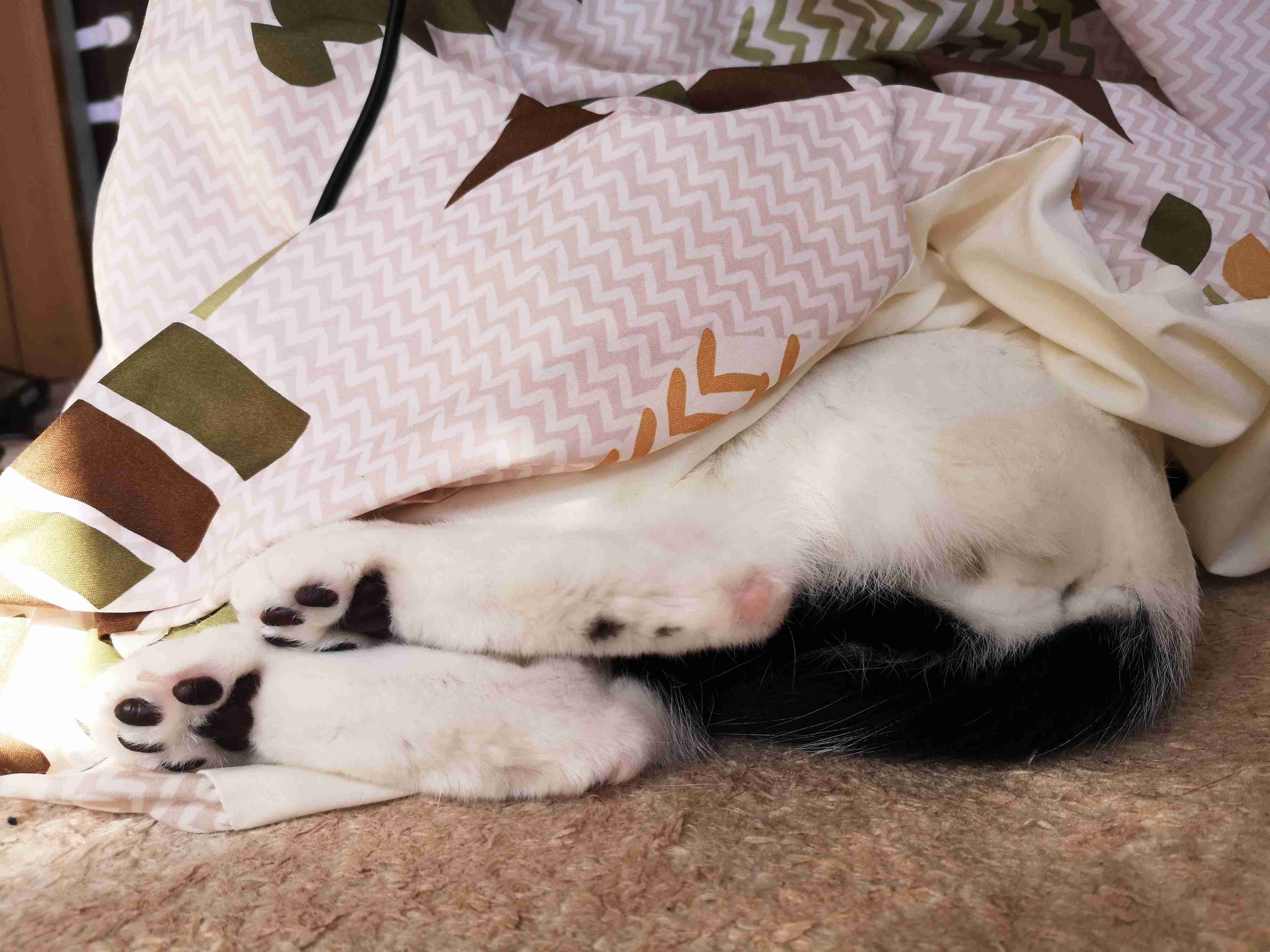 全身入ってヘソ天で寝てたと思ったら「あっつ」って感じでのそのそ出てきてフローリングでバタッと倒れ込んでヘソ天