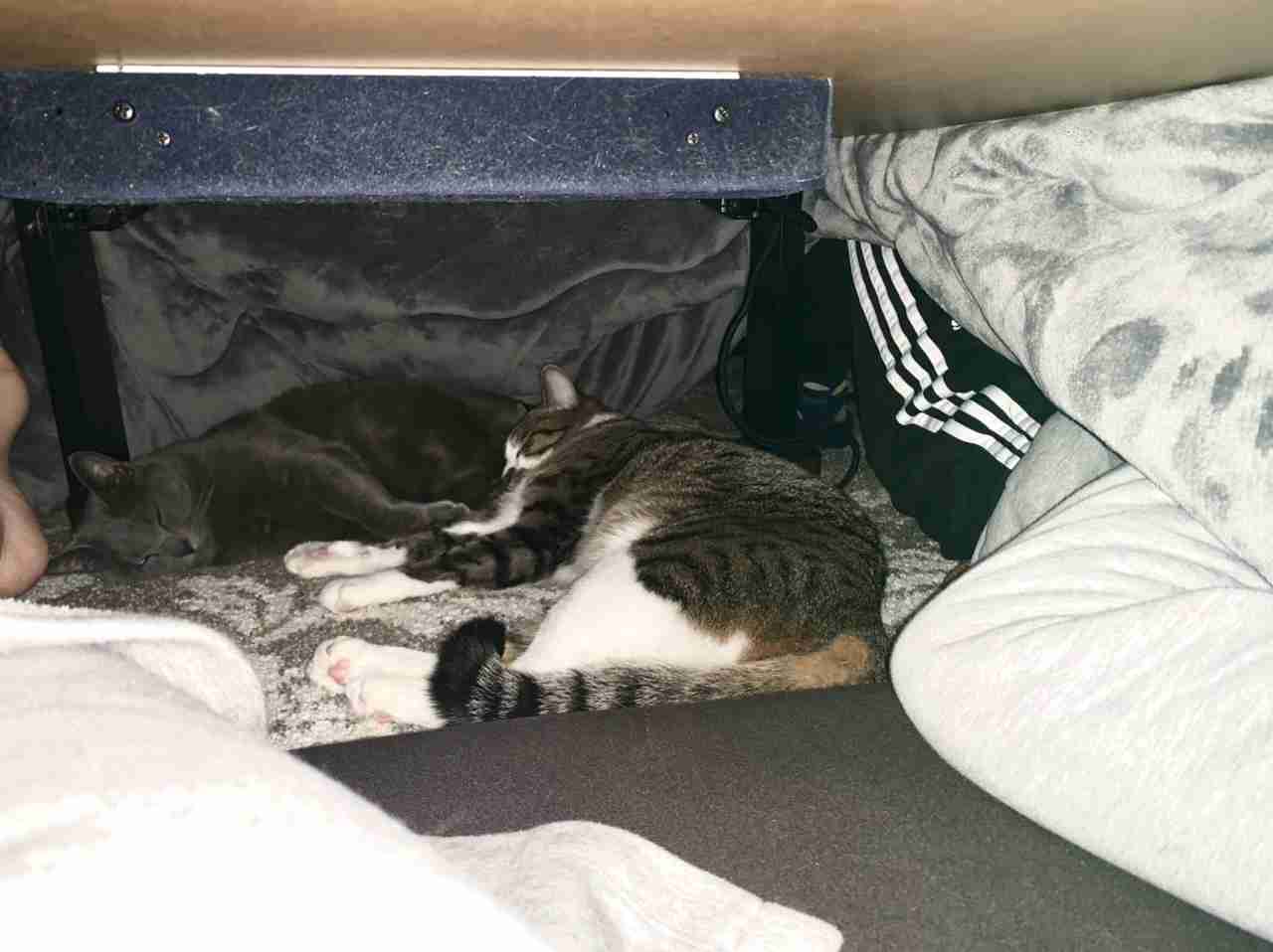 3匹の猫がこたつを独占するようになったので、家族が猫にこたつを献上したわ。