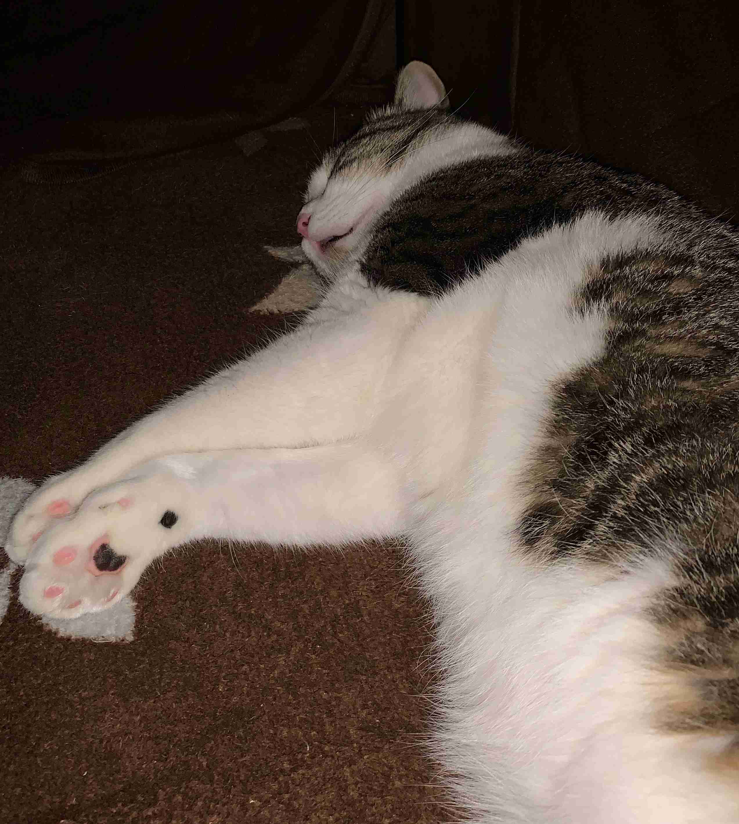 手足を伸ばしてのびのびと寝ています