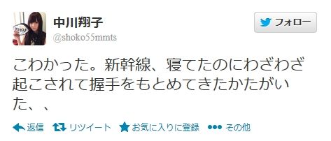 わざわざ握手したいが為に翔子さんを起こしたまではいいけど、本人さえTwitterに投稿しなければまだ良かったような気が…