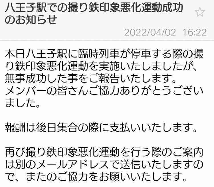 この前ホームで撮り鉄3人組が通路塞いでたら土方の兄ちゃんに蹴散らされてたな+347