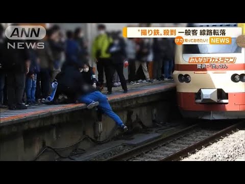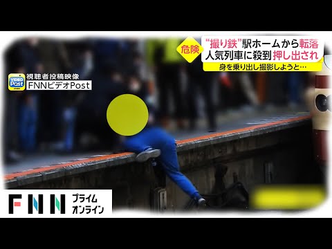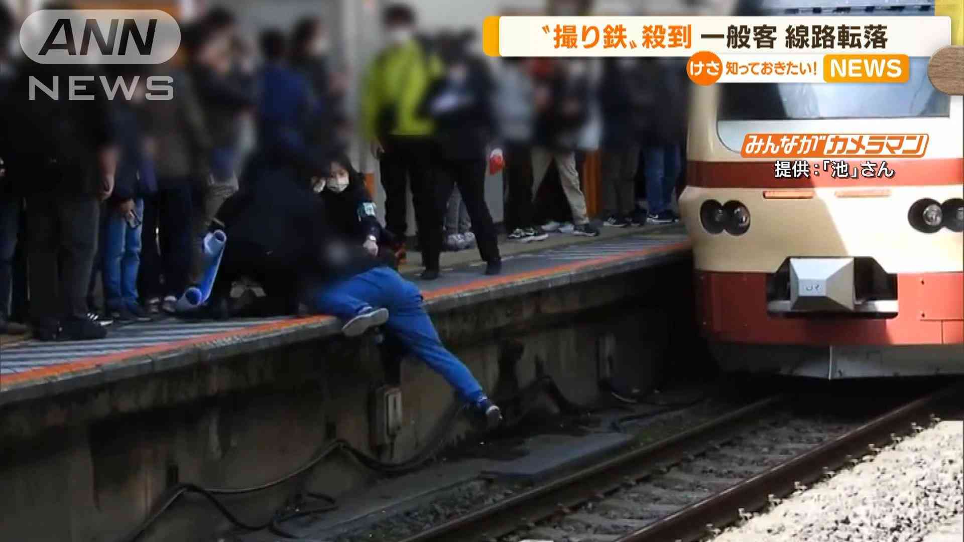 目撃者:「少しでも、自分が人よりも列車寄りで撮りたいということで、線路側に集団が移動していって。その集団を避けようとして、一般の方が歩いていたが、押されてしまって、踏み外してしまって。ホームから線路に転落した」