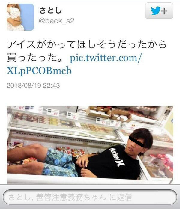 ステーキハウス・ブロンコビリーの店員か?→冷蔵庫に入って遊ぶ画像をツイートし炎上girlschannel.netステーキハウス・ブロンコビリーの店員か?→冷蔵庫に入って遊ぶ画像をツイートし炎上※以下が騒ぎになったツイートです。