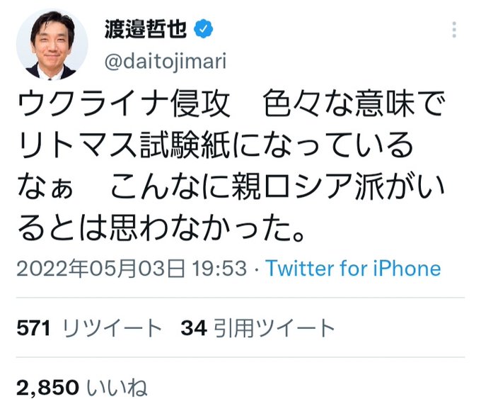 以前ミヤネ屋出演時に政府は制裁より国益を重視するべきだと発言し見事にスルーされ、ミヤネがウク人が苦しんでいるのですよ、とかぶせて終了+47