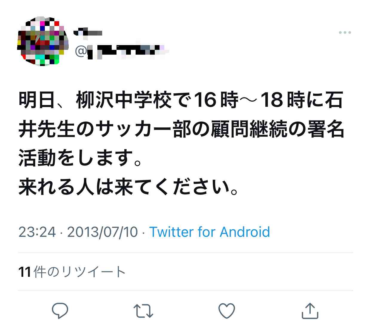 石井先生が受け持った生徒への配慮を求めて
