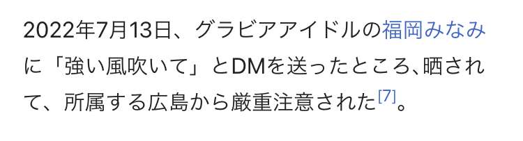 インスタライブで、一般人からもDMくるけどそんなのは全然どうでもいいっていうか、人間と思ってないんでって言ってて、相手が知名度あるから晒したんだろうなーって思ってる。