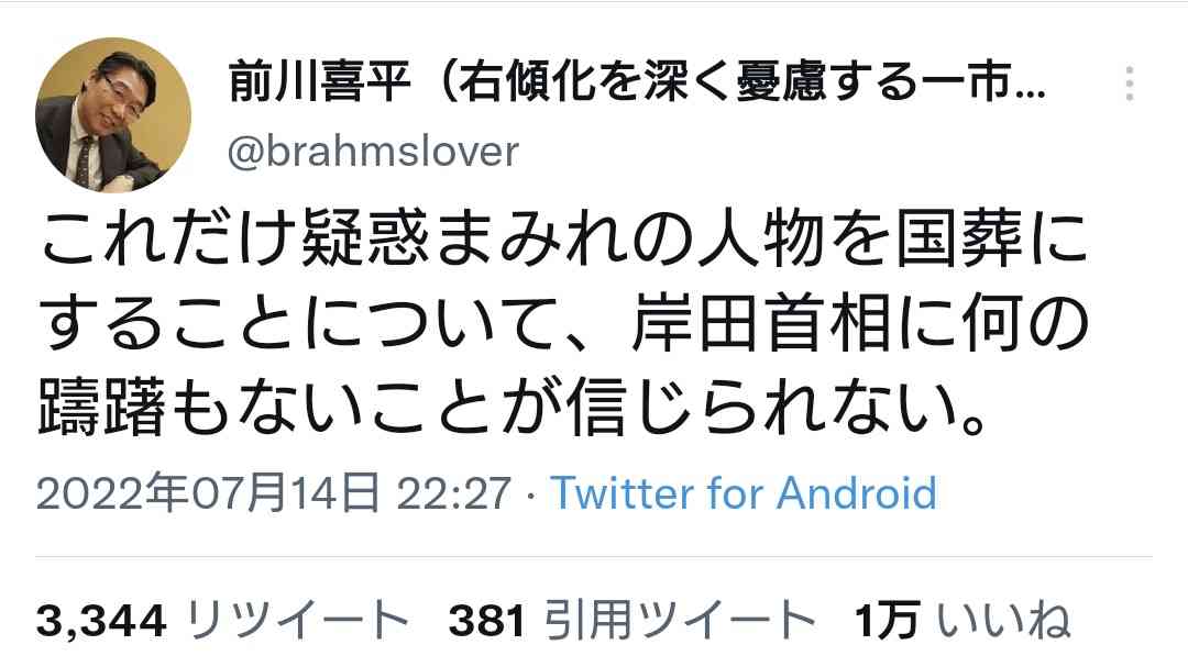 Twitterで国葬反対のタグトレンド入りしてたよ