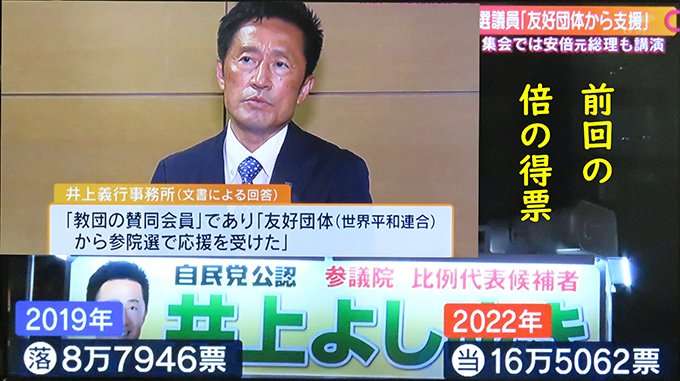 統一協会(世界平和統一家庭連合う)の賛同会員になったために得票数が2倍に